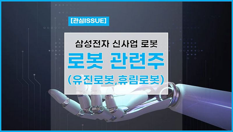 본 콘텐츠는 이슈에 관한 정보 및 이슈를 제공하는 것으로 특정 종목(주식)에 대한 매매를 추천하는 글이 아니며 투자에 대한 판단 및 책임은 본인에게 있습니다. 삼성전자 인수 기대로 주목받고 있는 로봇 테마주