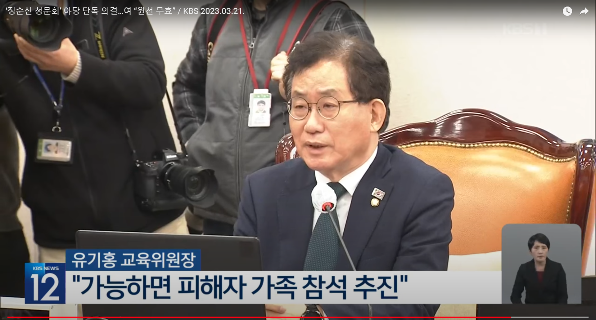 유기홍 교육위원장은 피해자 가족이 가능하면 출석을 촉구하겠다고 밝혔고, 정 변호사가 불참을 요구하면 배우자와 아들을 증인으로 부르겠다고 경고했다.