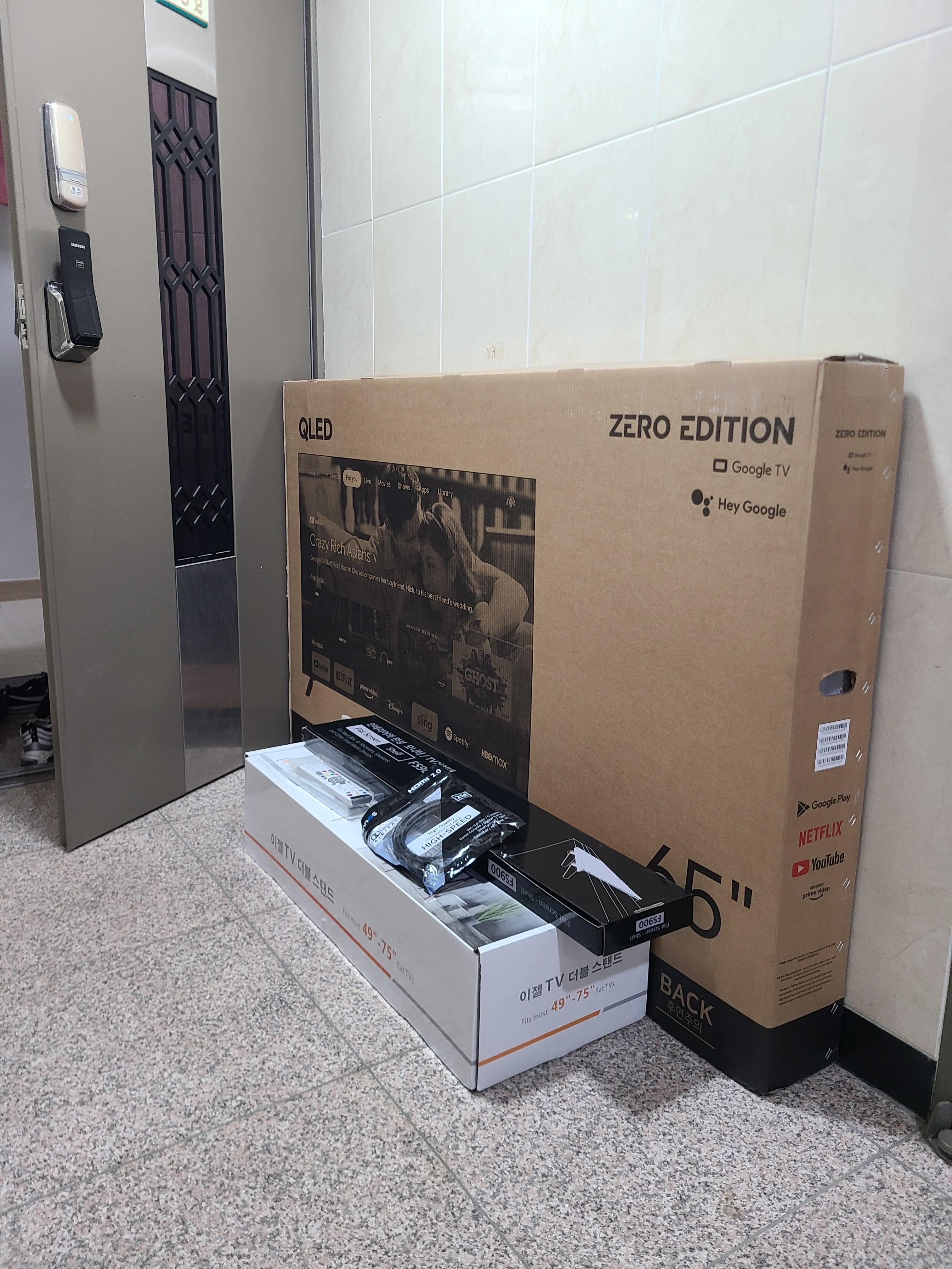 사이즈는 65인치…75인치로 하고 싶었는데 거실 폭이 좁아서 65인치로 구매했습니다. 75인치로 구매했으면 더 좋았을텐데 티비가 창가쪽에 있어서 창문을 다 가린거 같아요. 65인치도 창의 절반을 가립니다. . 42인치에 비하면 65인치도 신세계입니다. ^^