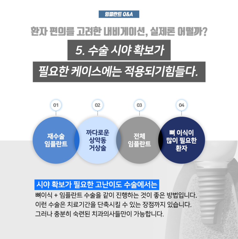 치과에 별로 가지 않아도 되기 때문에 내원 횟수를 줄이는 것도 중요하지만, 그런 이유로 내비게이션 임플란트가 주목받고 있었습니다.컴퓨터 분석을 통해 식립 개수를 줄이면 비용도 떨어지므로 내비게이션 디지털 임플란트에 대해 문의가 많이 늘었는데 창동 임플란트 서울스마트치과에서 진행 가능했습니다.임플란트를 준비하는 것이 더 오래 걸릴까 걱정되지만 자동차에 탑재된 내비게이션처럼 컴퓨터로 임플란트 식림 경로를 신속하고 안전하게 안내하는 디지털 임플란트였습니다.병아리 이상의 치아를 잃은 다수의 임플란트는 모든 치아 자리에 임플란트를 식립하게 되면 비용도 비용이고 일단 체력을 견딜 수 있을지 걱정이지만 디지털 임플란트를 통해 최소 개수 식립이 가능했습니다.
